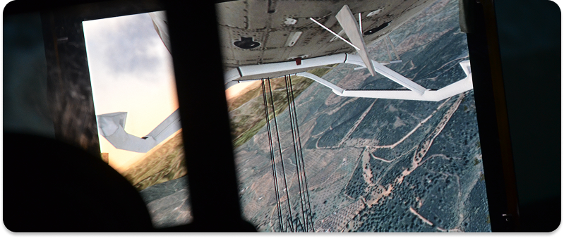 El simulador de helicóptero de SEILAF cuenta con desarrollos específicos para el entrenamiento en misión de incendios forestales. Esto significa que su entorno visual y modelo de vuelo incorporan elementos, características y funcionalidades específicas para la simulación de operaciones de extinción de incendios. El entorno visual reproduce con alto nivel de resolución y realismo las evoluciones de incendios forestales, los medios que actúan con una lógica automática desde tierra y aire en el incendio (‘entidades tácticas’) y la reacción del incendio a las acciones de extinción desarrolladas, tanto desde el propio simulador de helicóptero, como desde el resto de entidades tácticas.